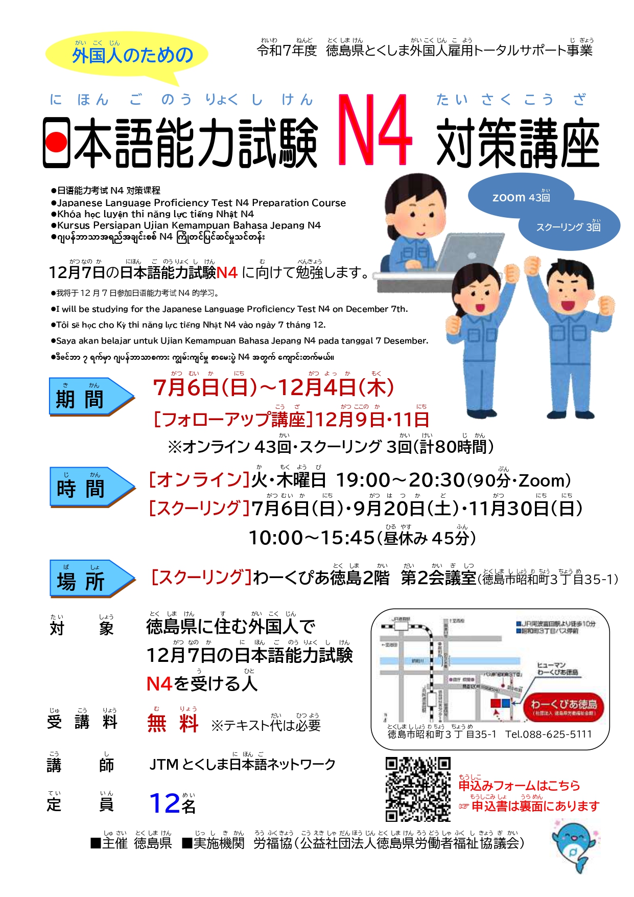 对象:居住在德岛县,12月7日参加N4日语能力考试的外国人