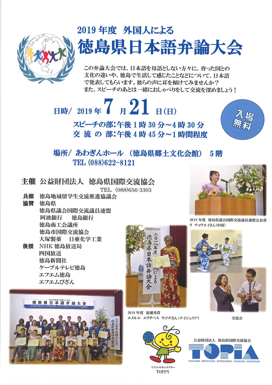 2019年度 外国人による徳島県日本語弁論大会 ~応援に来て下さい~