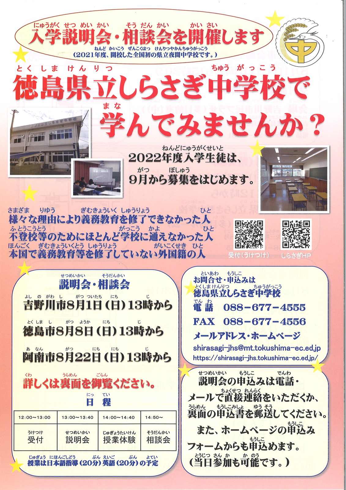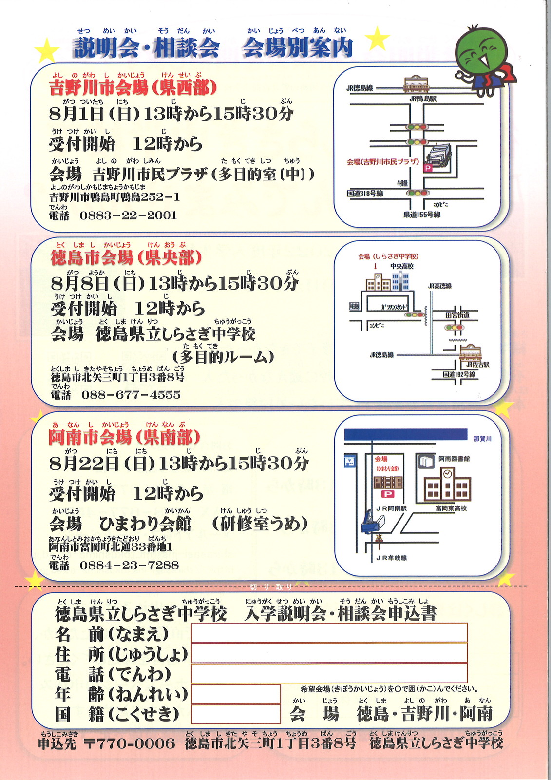 県立しらさぎ中学校 入学説明会(にゅうがくせつめいかい)・相談会(そうだんかい)