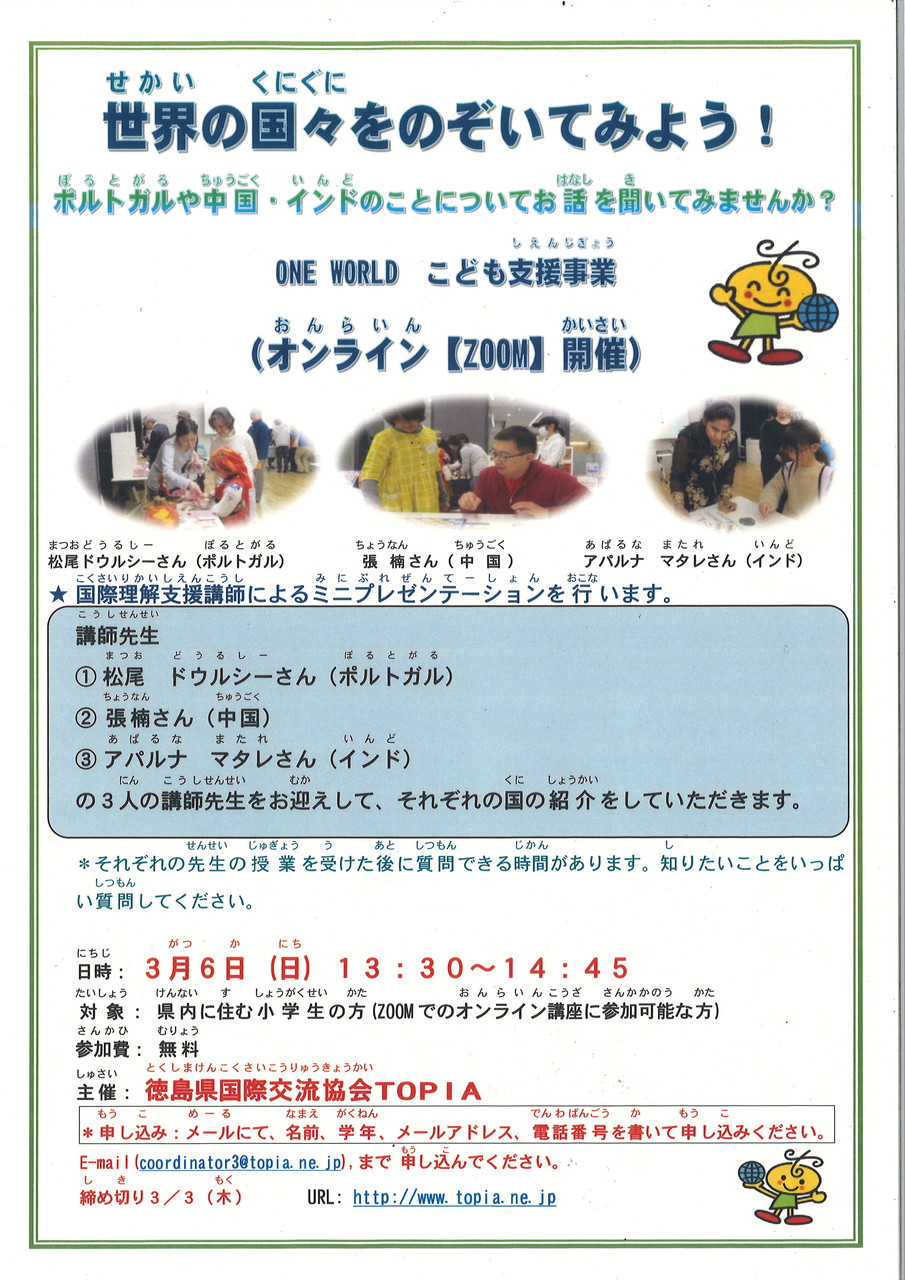 無料(むりょう)ですので、ぜひ参加してください。申込(もうしこみ)は3月3日までおねがいします。
