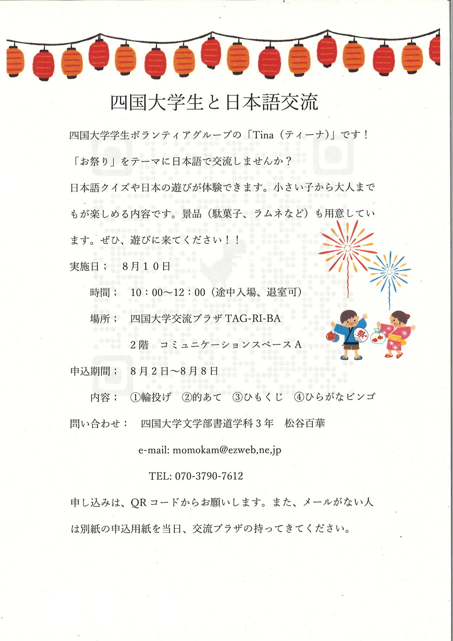 四国大学生と日本語交流【四国大学学生ボランティアグループ Tina(ティーナ)】