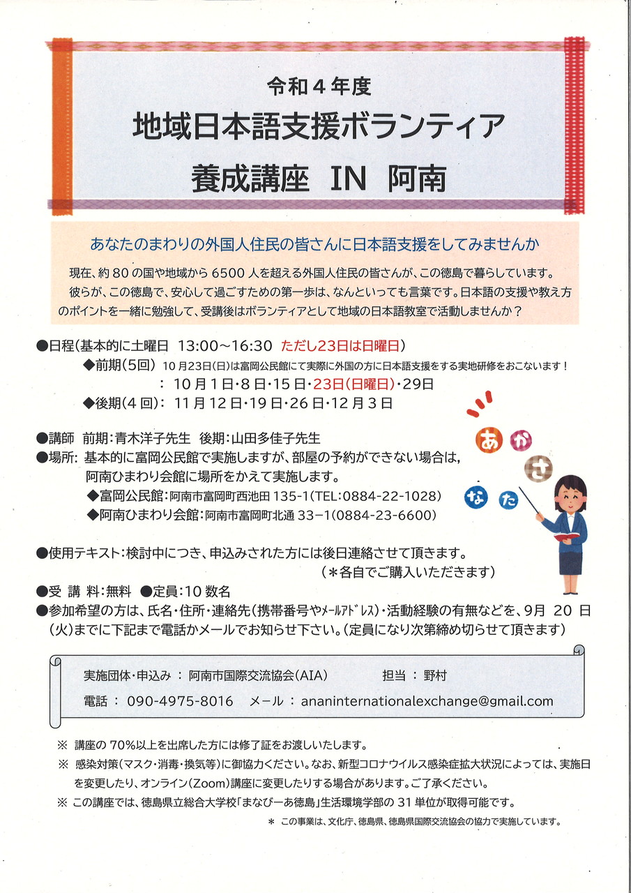 令和4年度 地域日本語支援ボランティア養成講座 in 阿南
