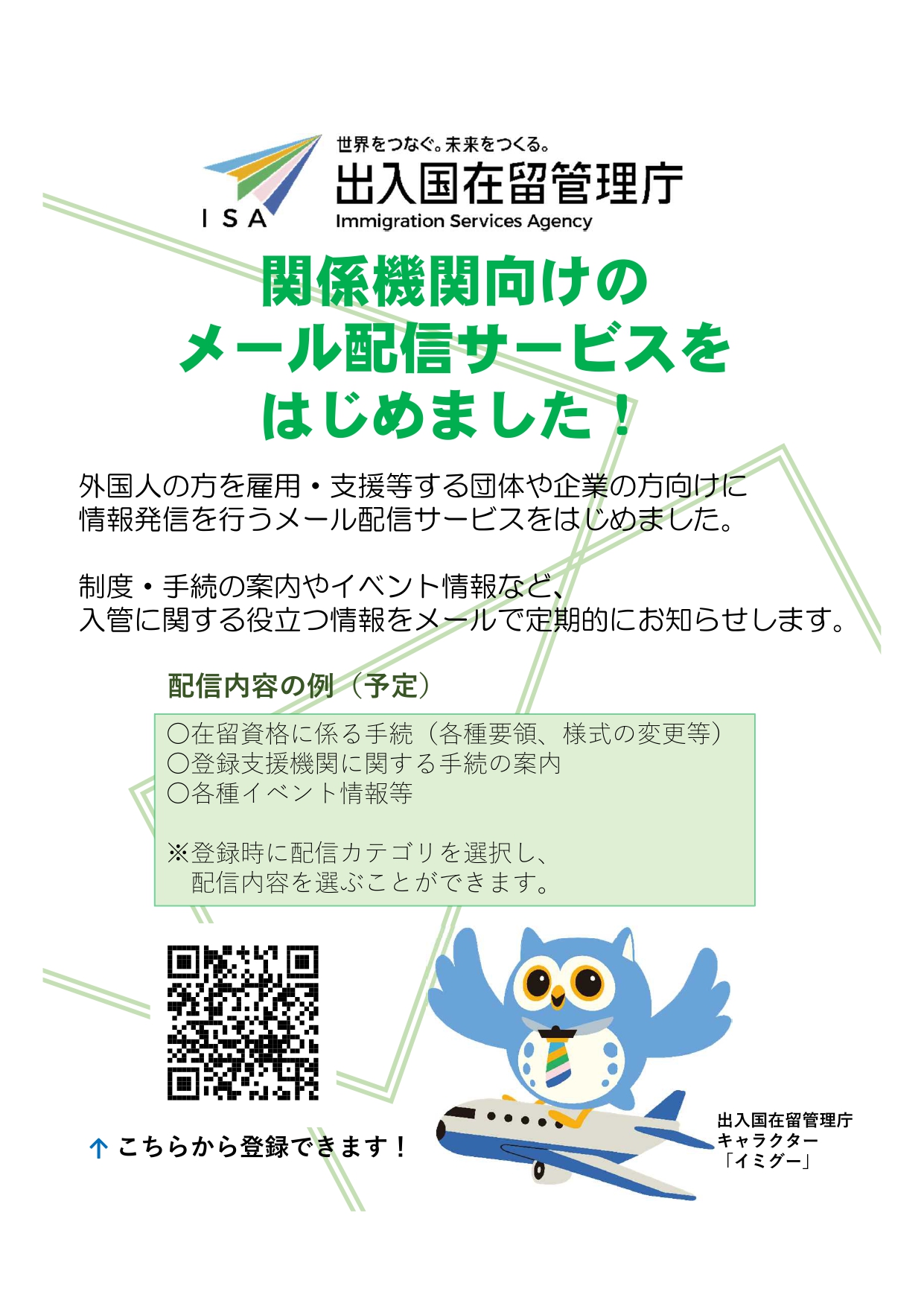 【出入国在留管理庁 メール配信サービスをリニューアルしました!】