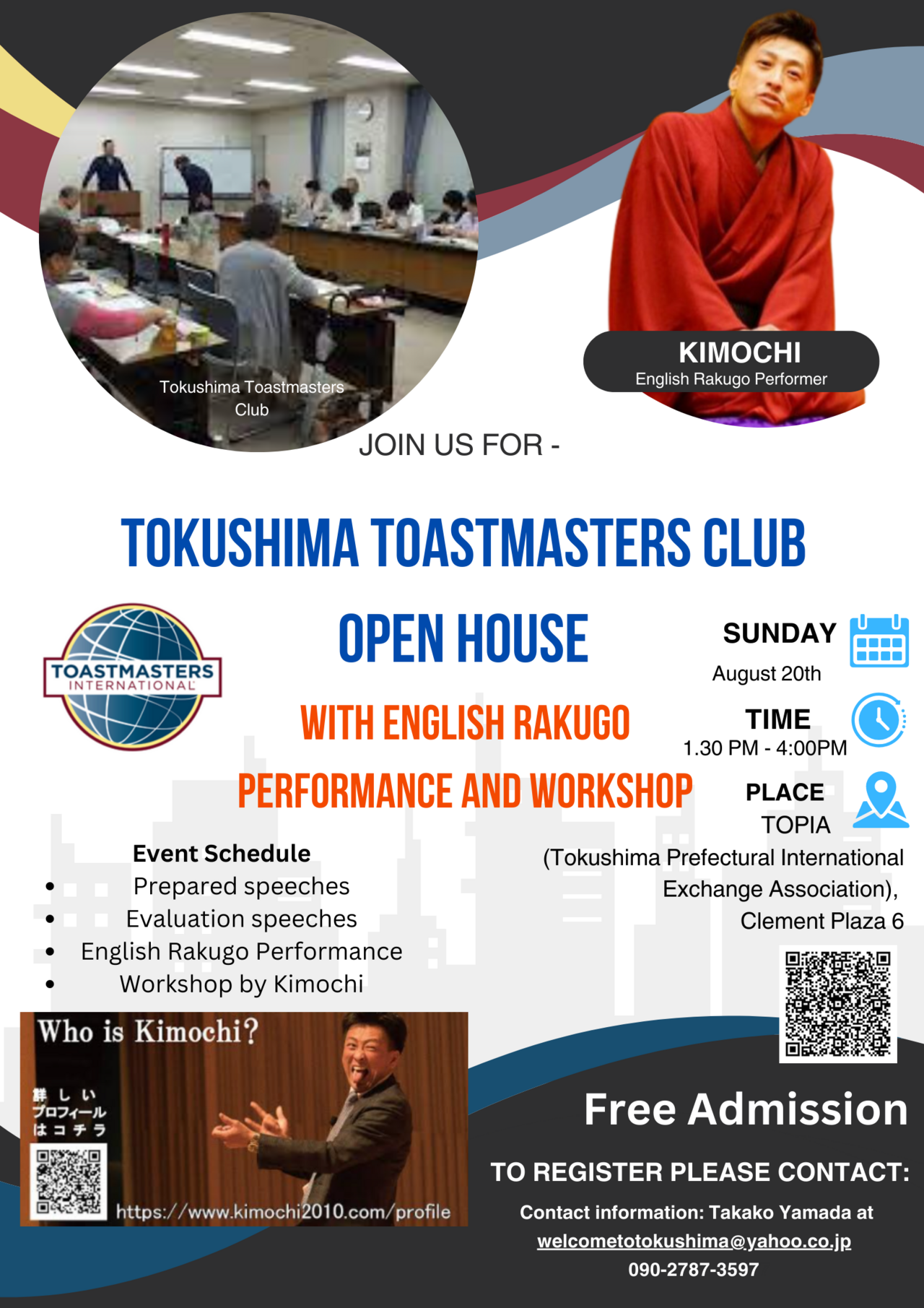 TOKUSHIMA TOASTMASTERS CLUB OPEN HOUSE with English Rakugo performance and workshop