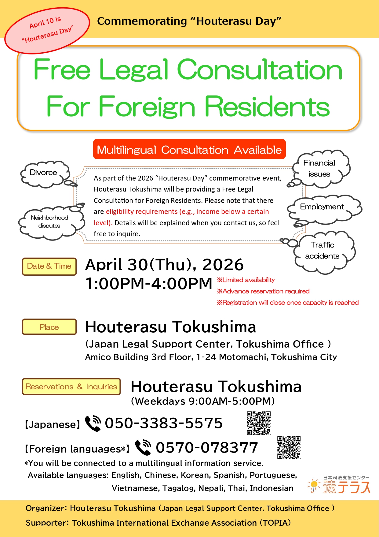 Houterasu Tokushima "Free Legal Consultation For Foreign Residents"