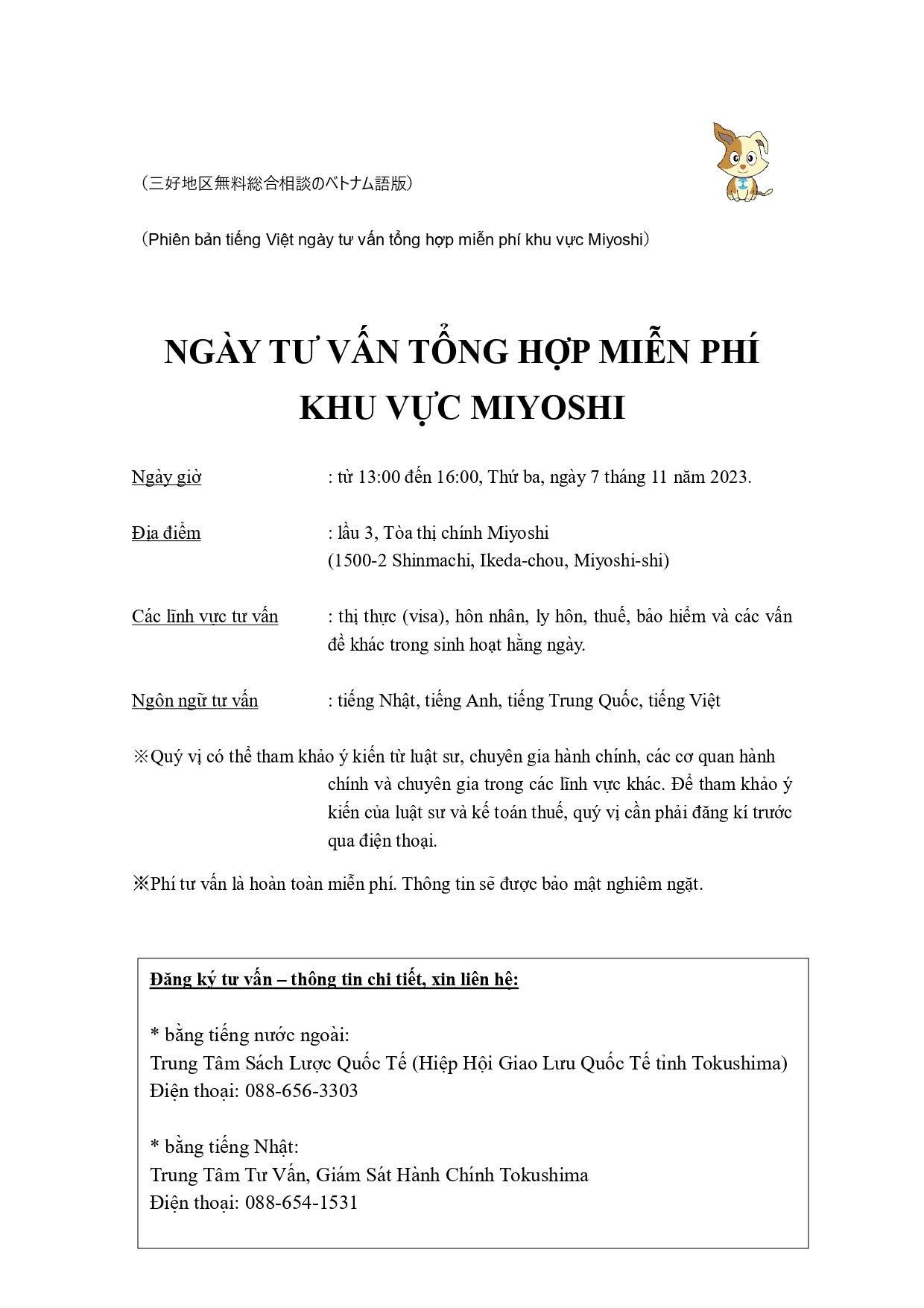 NGÀY TƯ VẤN TỔNG HỢP MIỄN PHÍ KHU VỰC MIYOSHI