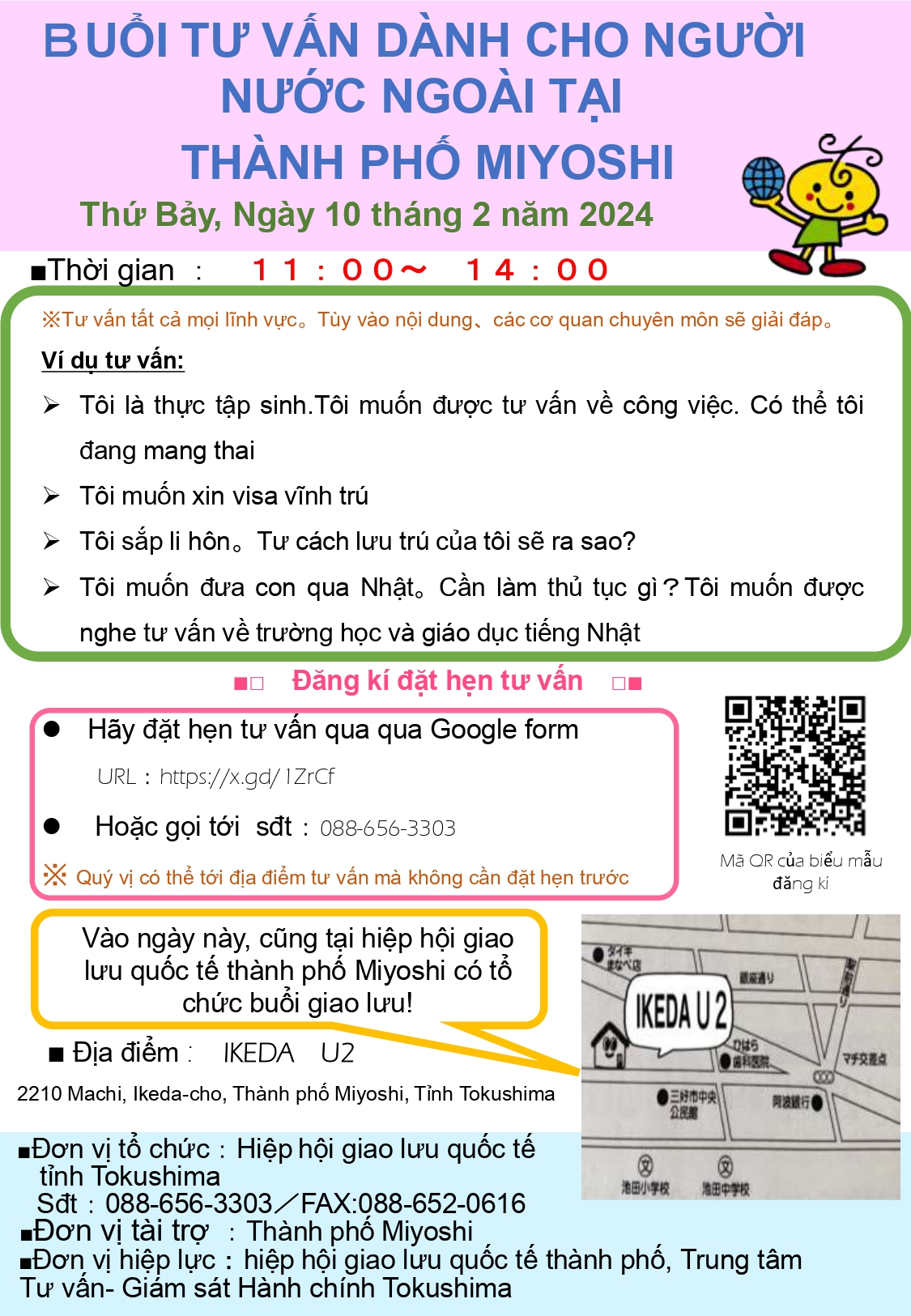 Thời gian tư vấn:11:00 ~ 14:00, Thứ bảy ngày 10 tháng 2 năm 2024