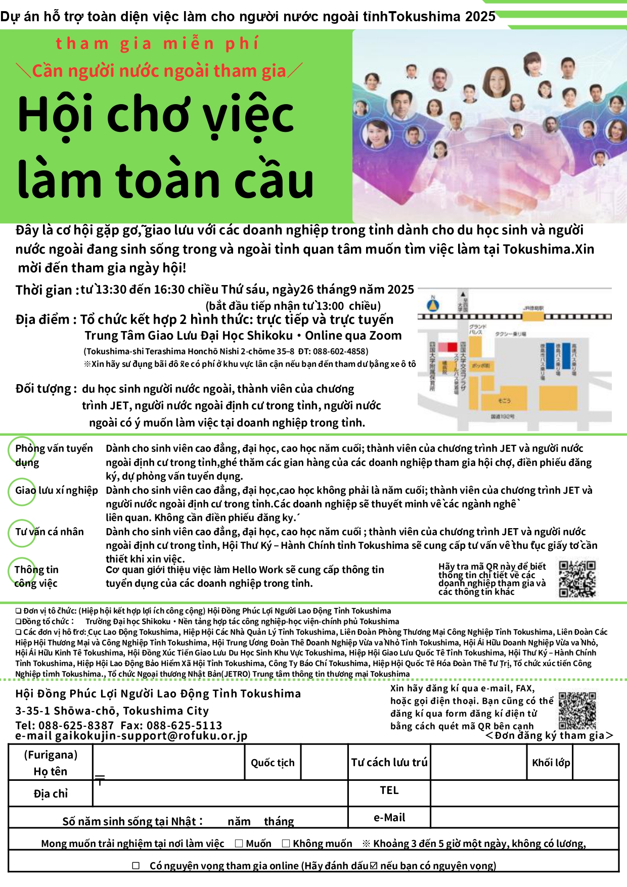 HỘI CHỢ VIỆC LÀM TOÀN CẦU 2025【HỘI ĐỒNG PHÚC LỢI NGƯỜI LAO ĐỘNG TỈNH TOKUSHIMA】